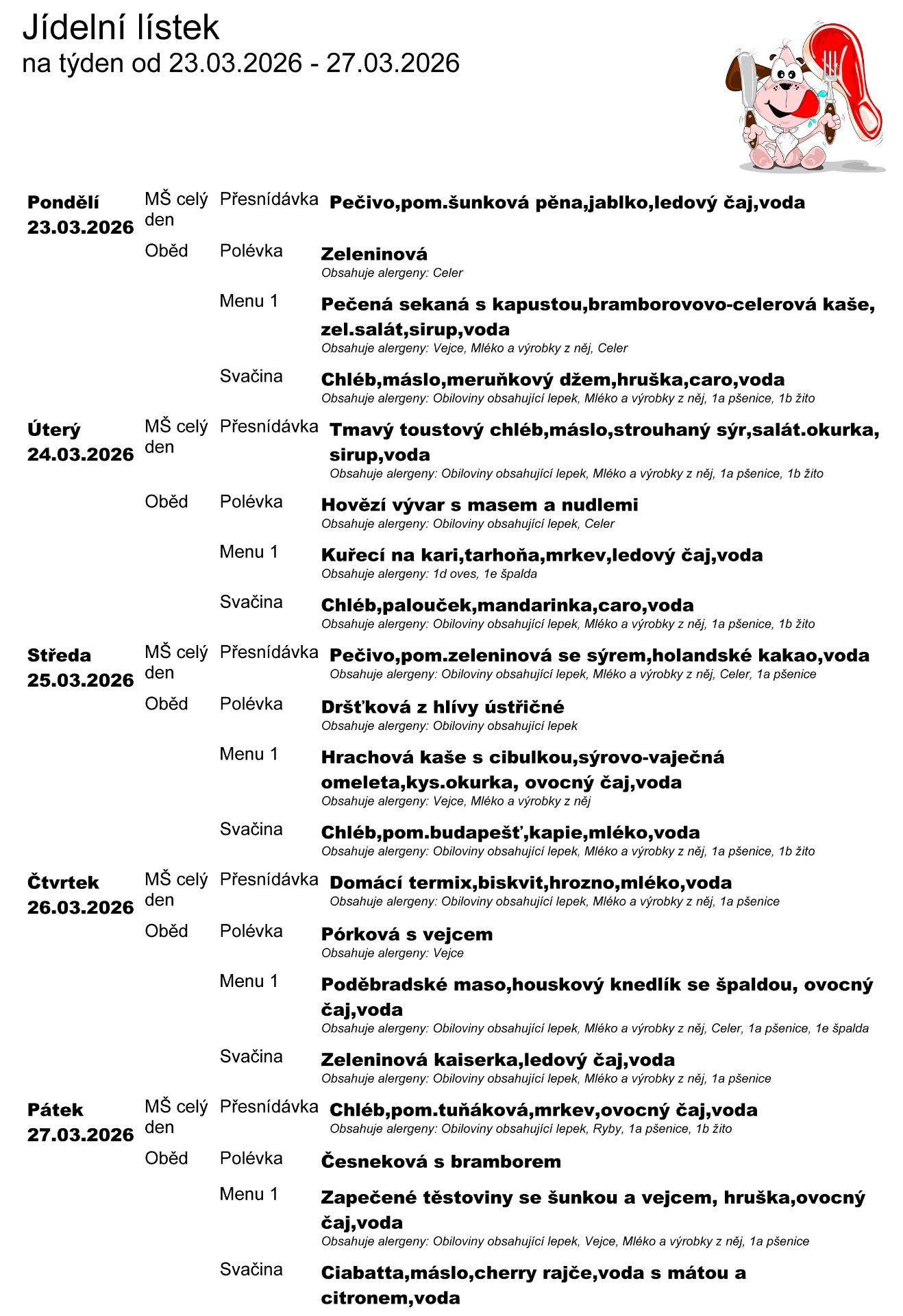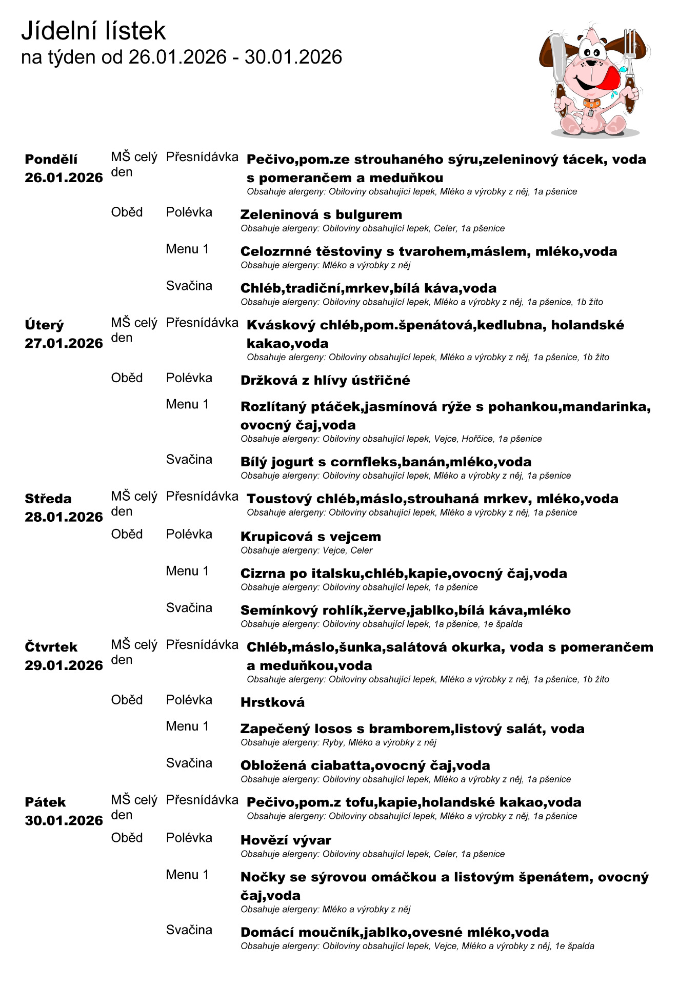 • jídelníček